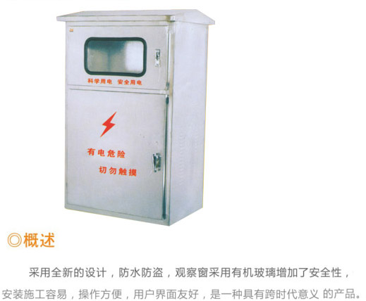 產(chǎn)品概述: 不銹鋼JP柜系列采用全新的設(shè)計(jì),防水防盜,觀察窗采用有機(jī)玻璃增加了安全性,安裝施工容易,操作方便,用戶界面友好,是一種具有跨時(shí)代意義的產(chǎn)品。