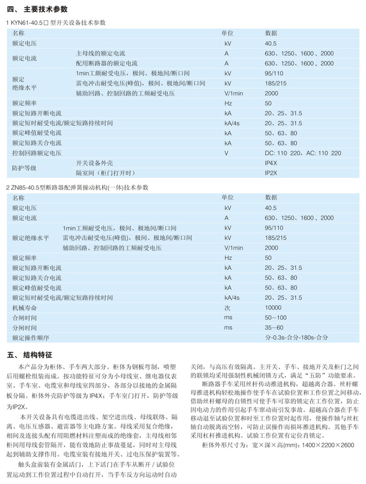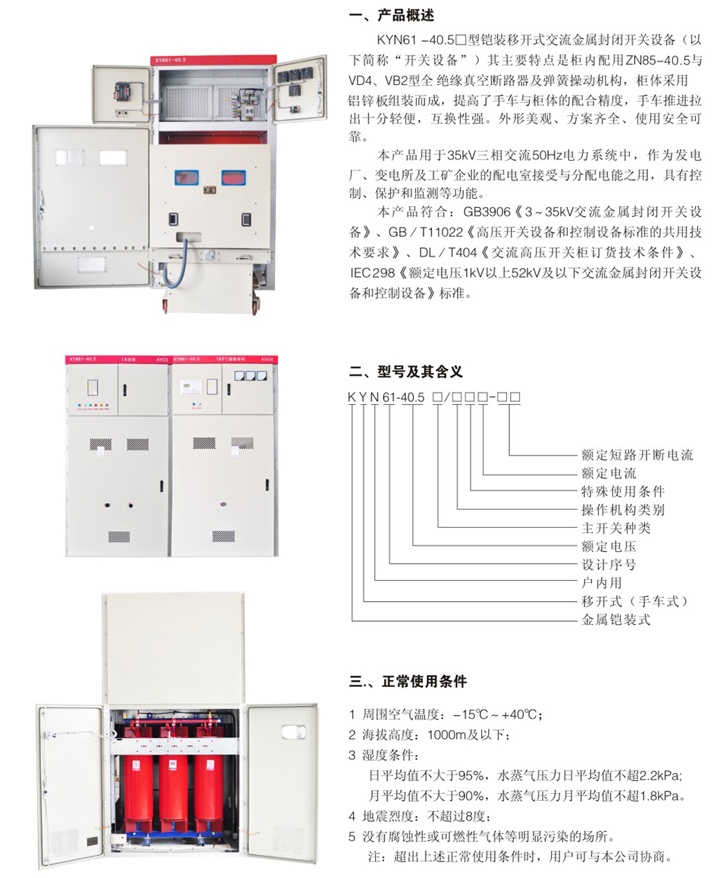 KYN61-40.5型鎧裝移開式交流金屬封閉開關(guān)設(shè)備