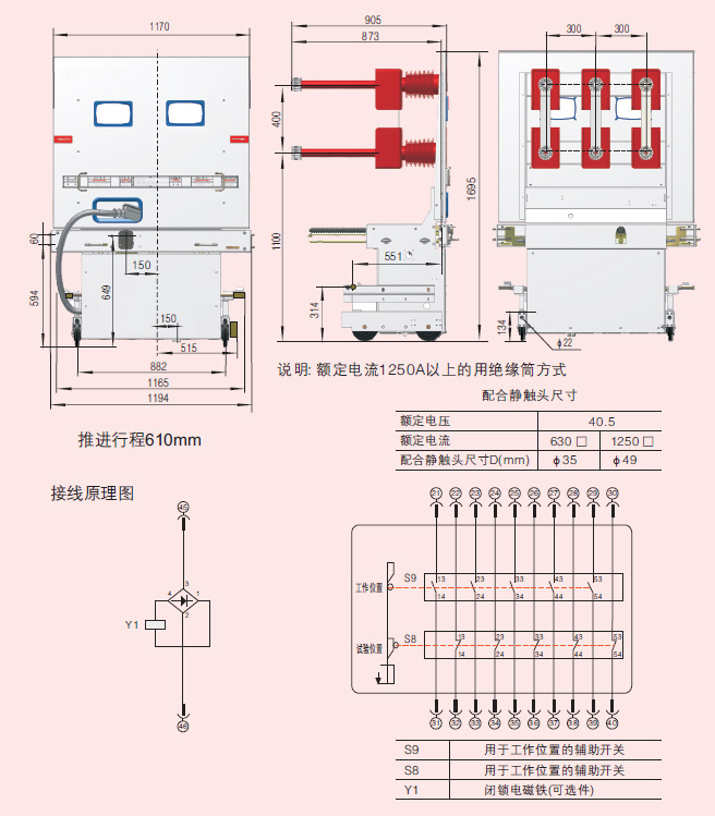 本公司設(shè)計生產(chǎn)的系列中手車車架中裝有絲杠螺母推進機構(gòu),可輕松移動手車,并防止誤操作而損壞推進結(jié)構(gòu);適用于KYN61-40.5鎧裝移開式金屬封閉開關(guān)設(shè)備中用于三相交流50Hz、40.5KV單母線分段電力系統(tǒng),手車配置不同的一次元器件,可分別具有母線聯(lián)絡(luò),電能測量、電力設(shè)備過載或短路保護作用,以及在系統(tǒng)檢修時作為保護功能單元。產(chǎn)品滿足GB/T11022-1999《高壓開關(guān)設(shè)備通用技術(shù)備件》的相關(guān)規(guī)定。根據(jù)手車的選用配置方案,可具有可靠的位置和聯(lián)鎖功能。