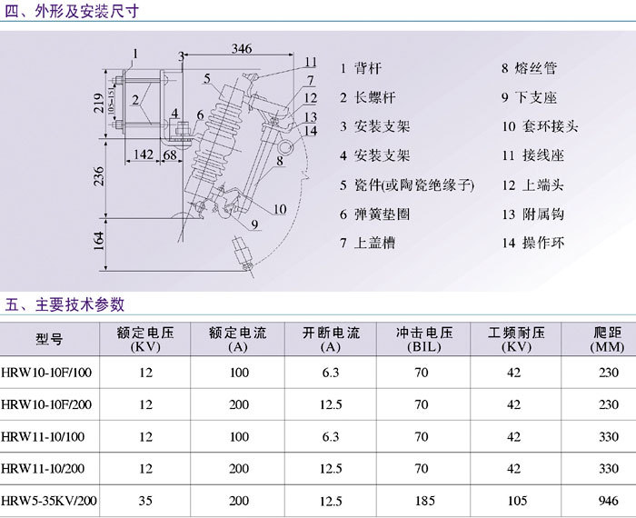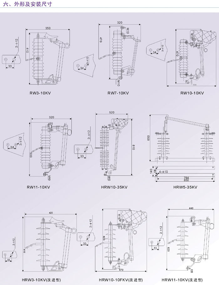 跌落式熔斷器及拉負(fù)荷跌落式熔斷器是戶外高壓保護(hù)電器。它裝置在配電變壓器高壓側(cè)或配電線支干線路上,用作變壓器和線路的短路、過(guò)載保護(hù)及分、合負(fù)荷電流。跌落式熔斷器由絕緣支架和熔絲管二部分組成,靜觸頭安裝在絕緣支架兩端,動(dòng)觸頭安裝在熔絲管兩端絲管由層的消弧管和外層的環(huán)氧玻璃管組成。拉負(fù)荷跌落式熔斷器增加彈性輔助觸頭及滅弧罩,用以分、合負(fù)荷電流。