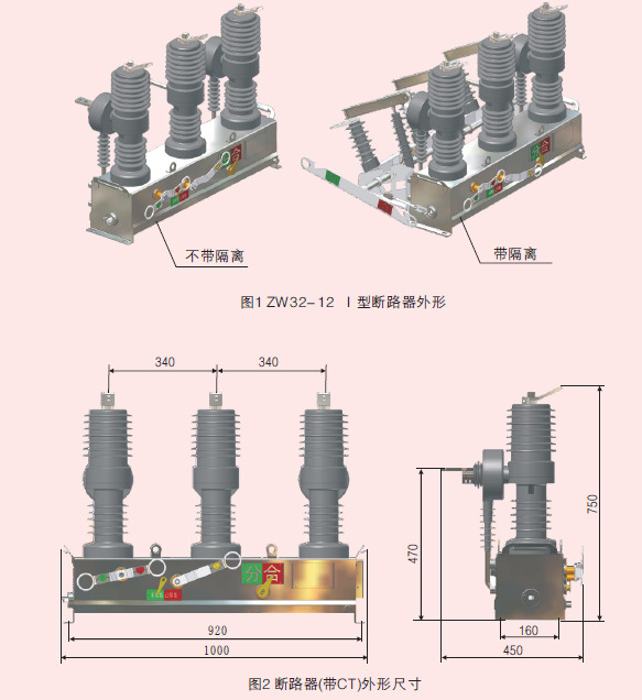 該斷路器由三相支住、機構(gòu)箱組成,結(jié)構(gòu)簡單明了,三相支柱及電流互感器采用戶外環(huán)氧樹固體或硅橡膠絕緣,具有耐高低溫、耐紫外線、耐老化等優(yōu)點;采用小型化彈簧操動機構(gòu),分合閘能耗低、機構(gòu)傳動輸出采用主軸滑動方式,無扭力損耗,分合傳動件少,可靠性高;電流互感器安裝于動端出線,二次采用插拔結(jié)構(gòu),維護更換方便。