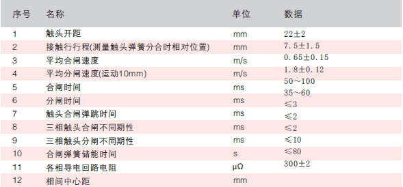 4.2斷路器裝配調(diào)整后的機械特性技術(shù)參數(shù)