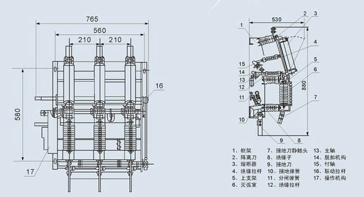 FZN21-12D/T630-20型戶內(nèi)高壓真空負(fù)荷開關(guān)系三相交流50Hz的戶內(nèi)高壓開關(guān)設(shè)備,適合于額定電壓為12kV的配電系統(tǒng)中。開關(guān)具關(guān)合、承載、開斷負(fù)荷及過負(fù)荷電流的能力;亦可開斷、關(guān)合空載長(zhǎng)線、空載變壓器及電容器。